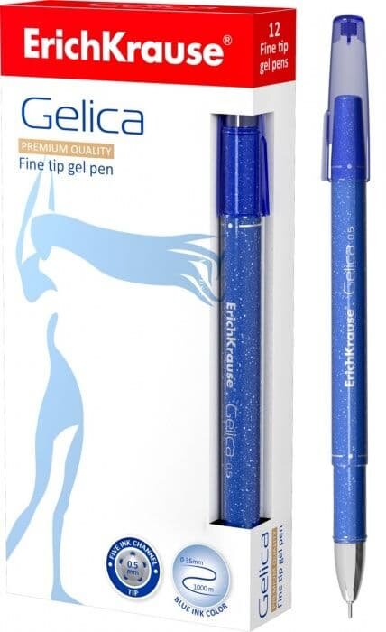 Ручка гелевая ErichKrause Gelica, чернила синие, узел 0.5 мм, длина линии письма 500 метров./В упаковке шт: 12
