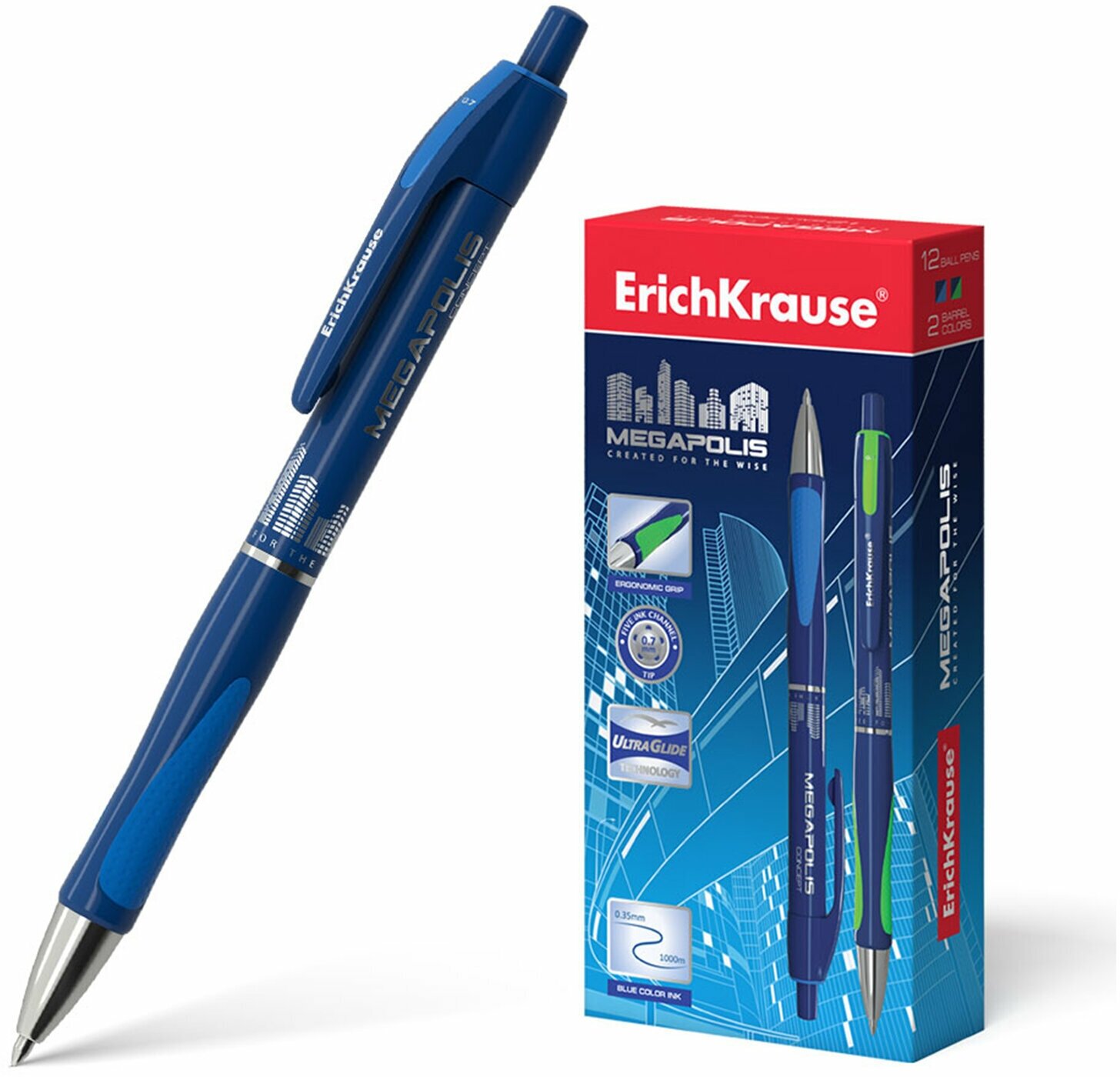 Ручка шариковая ERICH KRAUSE Megapolis Concept (31) синий d=0.7мм синие автоматическая сменный стерже
