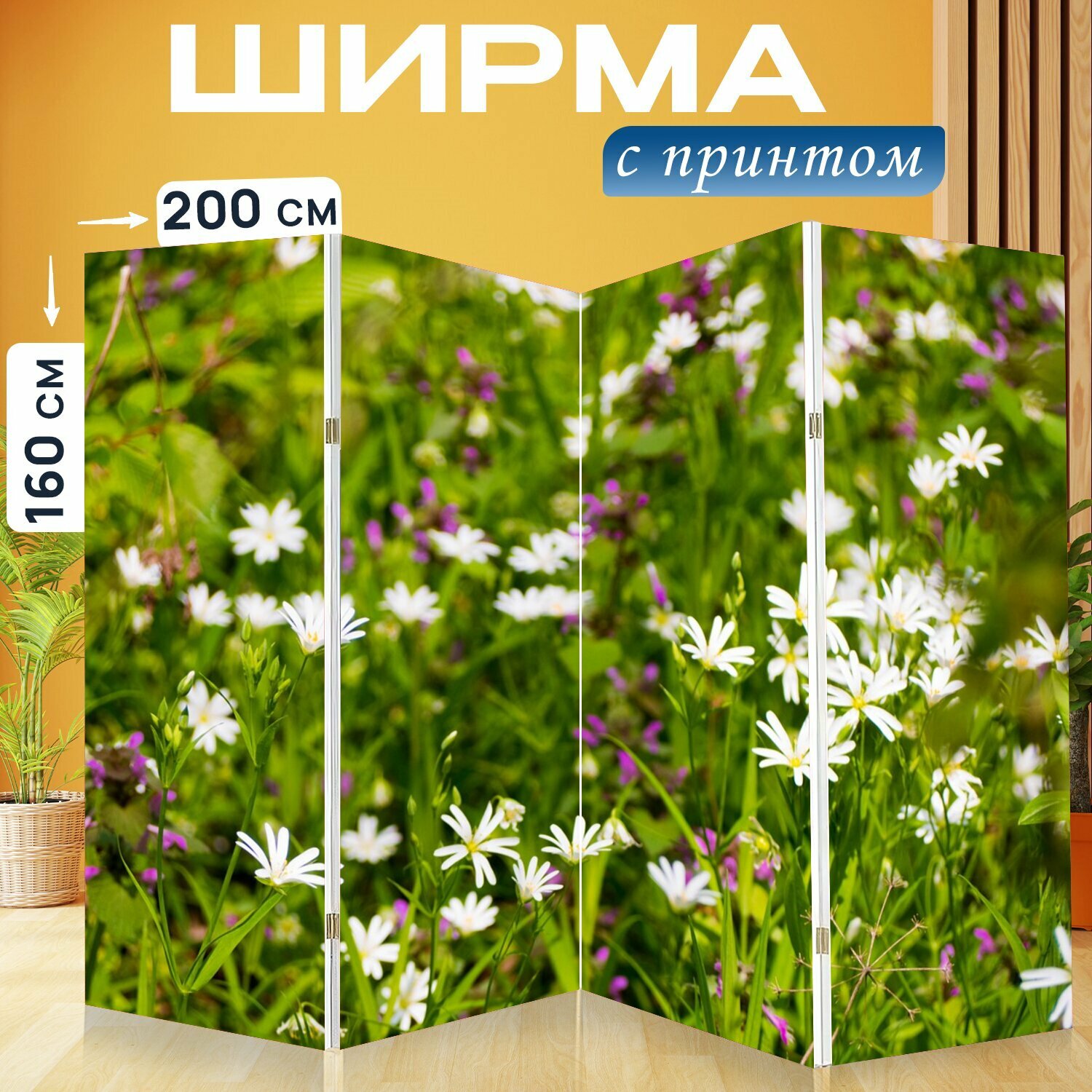 Ширма "Цветы, лес, флора" раскладная перегородка для зонирования с принтом на холсте интересное: