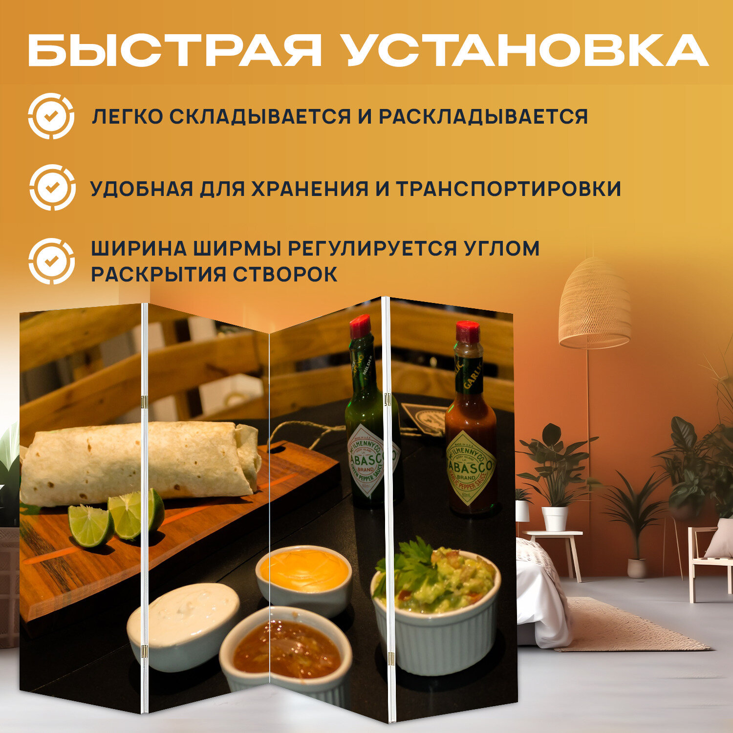 Ниже Вы можете прочитать отзывы на Ширма "Мексиканские продовольствия, гастрономия, питание" раскладная перегородка для зонирования с принтом на холсте, ознакомится с подробными характеристиками, посмотреть интересные обзоры и фотографии на Ширма "Мексиканские продовольствия, гастрономия, питание" раскладная перегородка для зонирования с принтом на холсте.