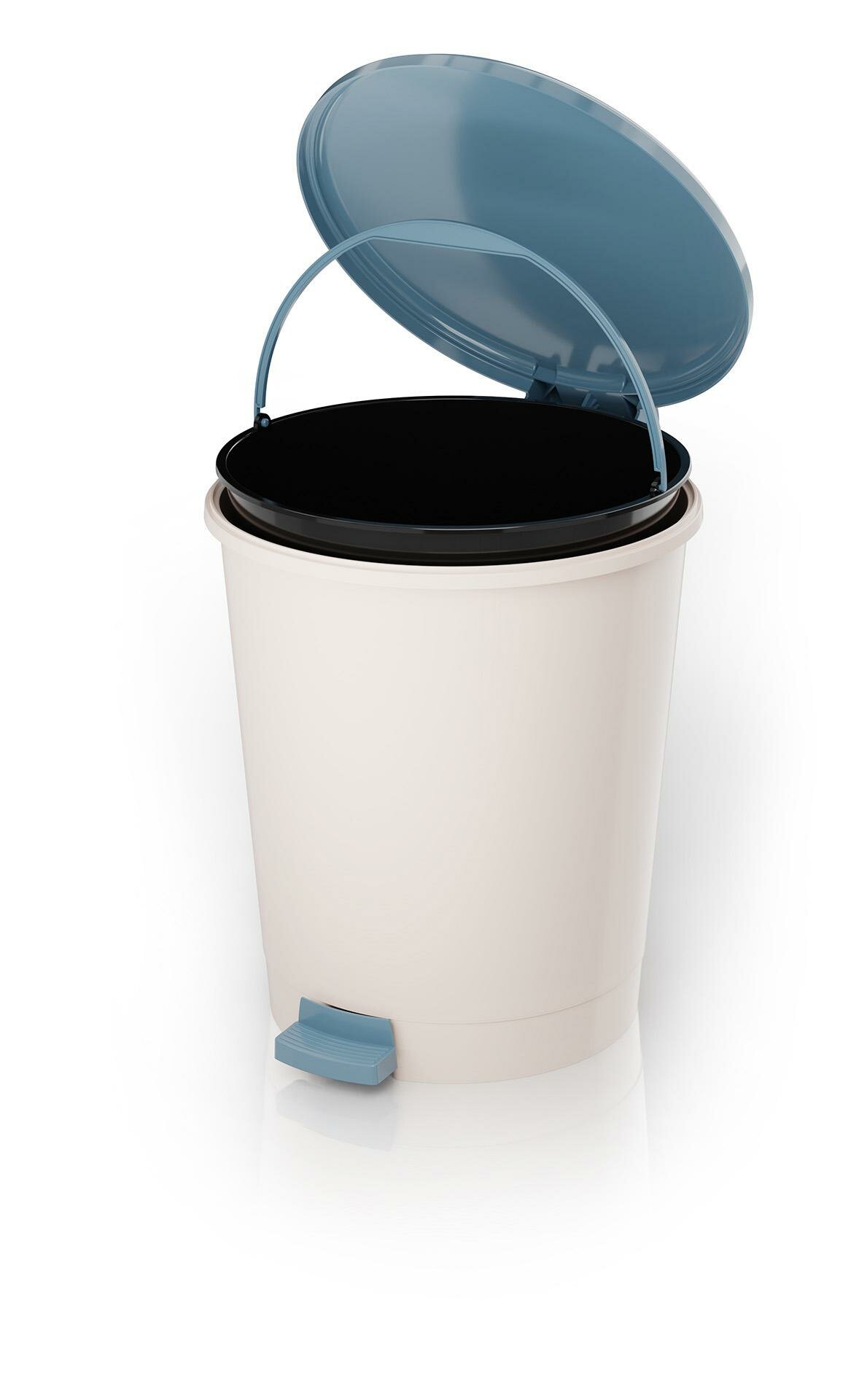 Ведро для мусора с педалью 10л, пластик, цвет светло бежевый-синий, Альтернатива М1381