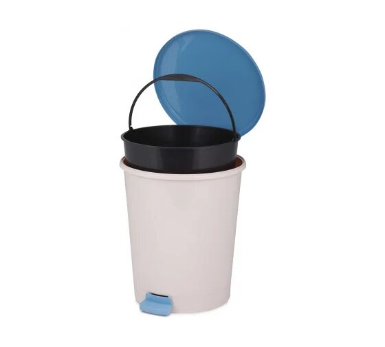 Ведро для мусора с педалью 10 литров (светло бежевый - синий) (1381)