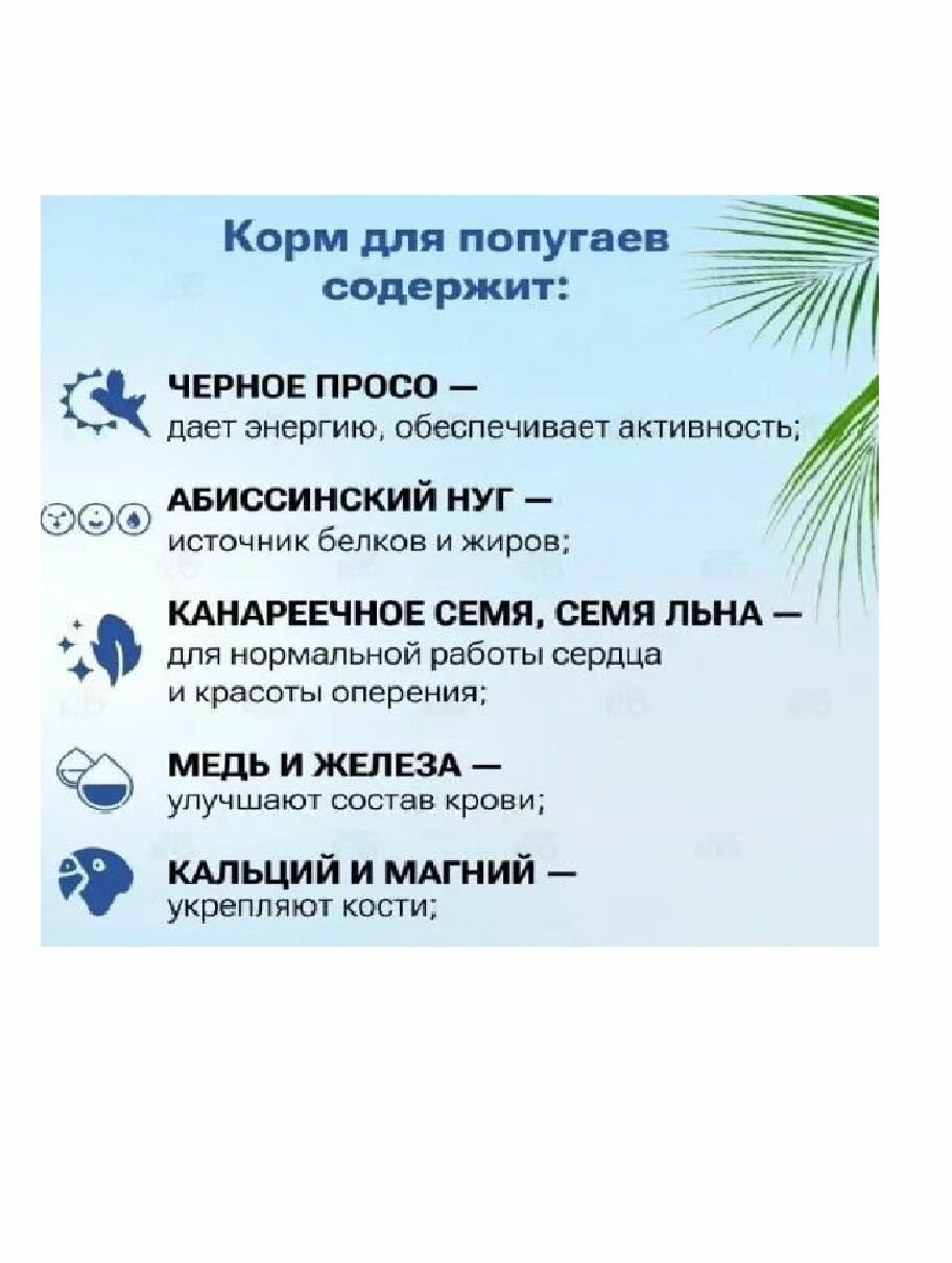 | Плюсы: | стабильный корм,попугаи едят хорошо |