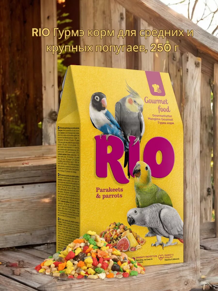 Ниже Вы можете прочитать отзывы на Рио Гурмэ корм для средних и крупных попугаев, 0,25 кг, 38727, ознакомится с подробными характеристиками, посмотреть интересные обзоры и фотографии на Рио Гурмэ корм для средних и крупных попугаев, 0,25 кг, 38727.