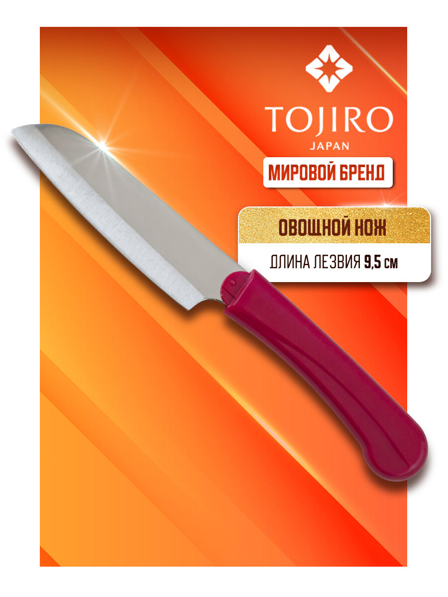 Кухонный нож Овощной Tojiro (FK-431), длина лезвия 9,5 см, сталь Sus420J2, рукоять пластик в ножнах (красный), Япония интересное: