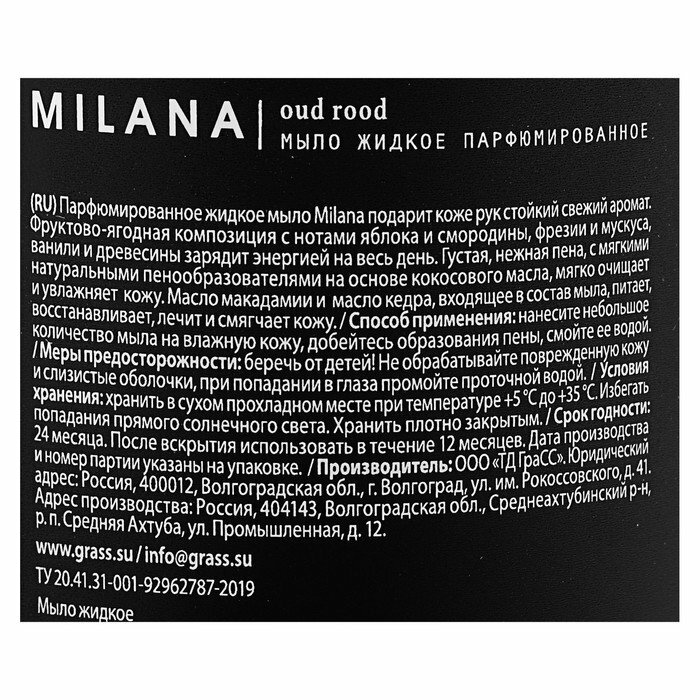СохранитьМыло жидкое парфюмированное Milana Oud Rood 300 мл - Grass интересное: