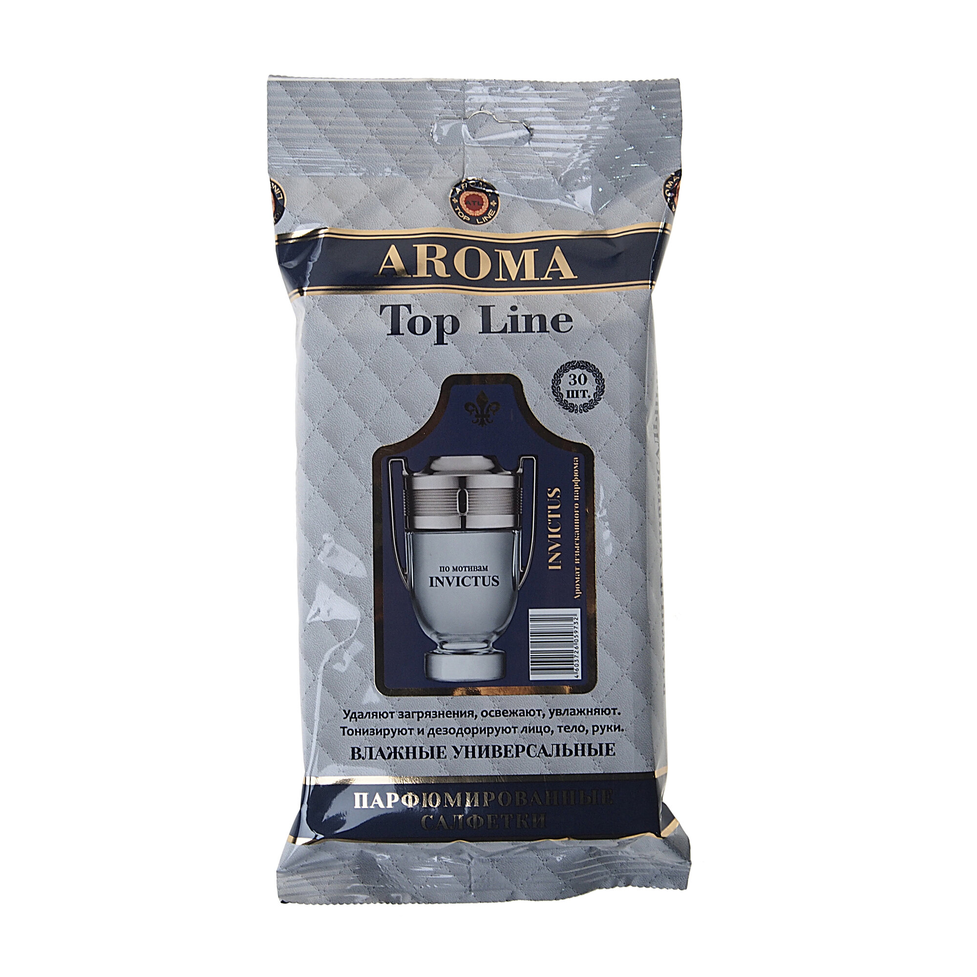 Влажные салфетки AROMA TOP LINE универсальные парфюмированные Paco Rabanne Invictus, 30 шт.