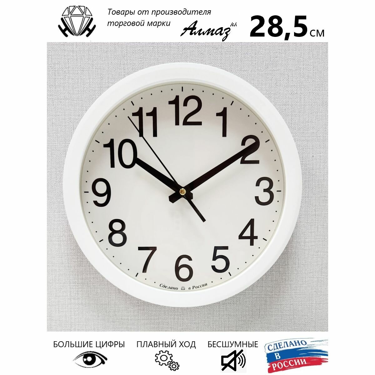 Ниже Вы можете прочитать отзывы на Часы настенные Алмаз бесшумные большие на кухню спальню офис B52, ознакомится с подробными характеристиками, посмотреть интересные обзоры и фотографии на Часы настенные Алмаз бесшумные большие на кухню спальню офис B52.