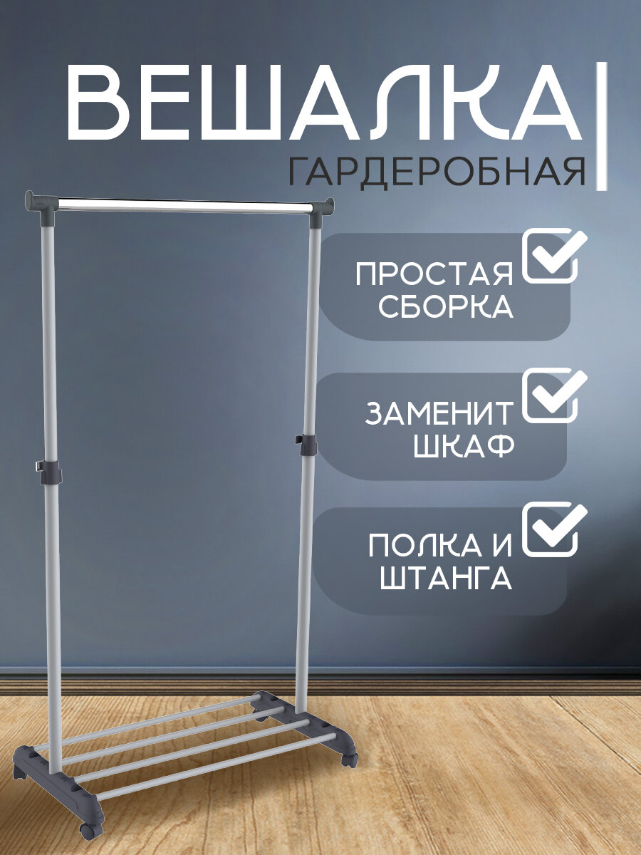 Вешалка для плечиков СН-4345, 1660х860х440 мм, передвижная, пластик/металл, серая/хром (арт. 603589)