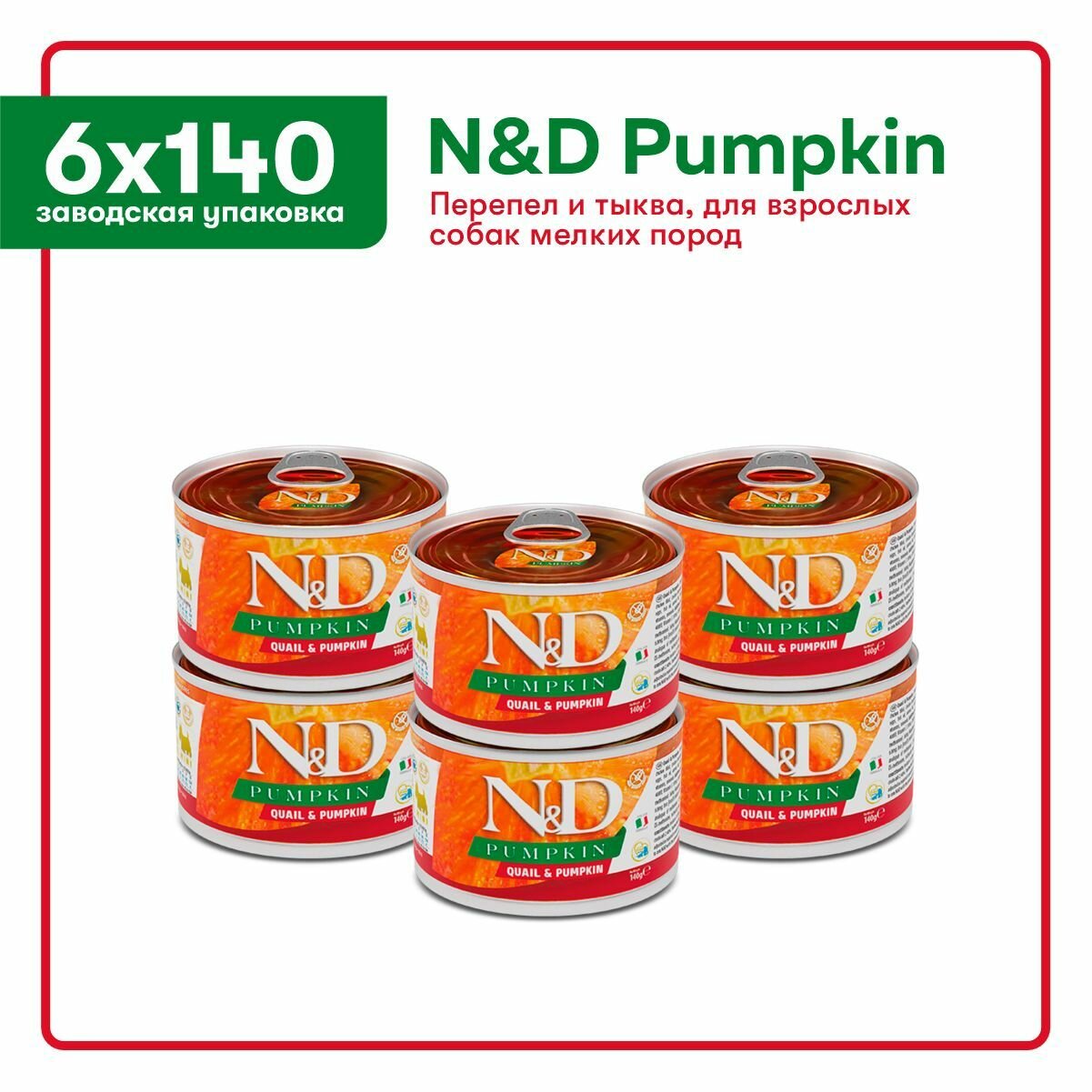 Farmina N&D Dog Pumpkin Adult Mini консервы для взрослых собак мелких пород Перепел и тыква, 140 г. упаковка 6 шт