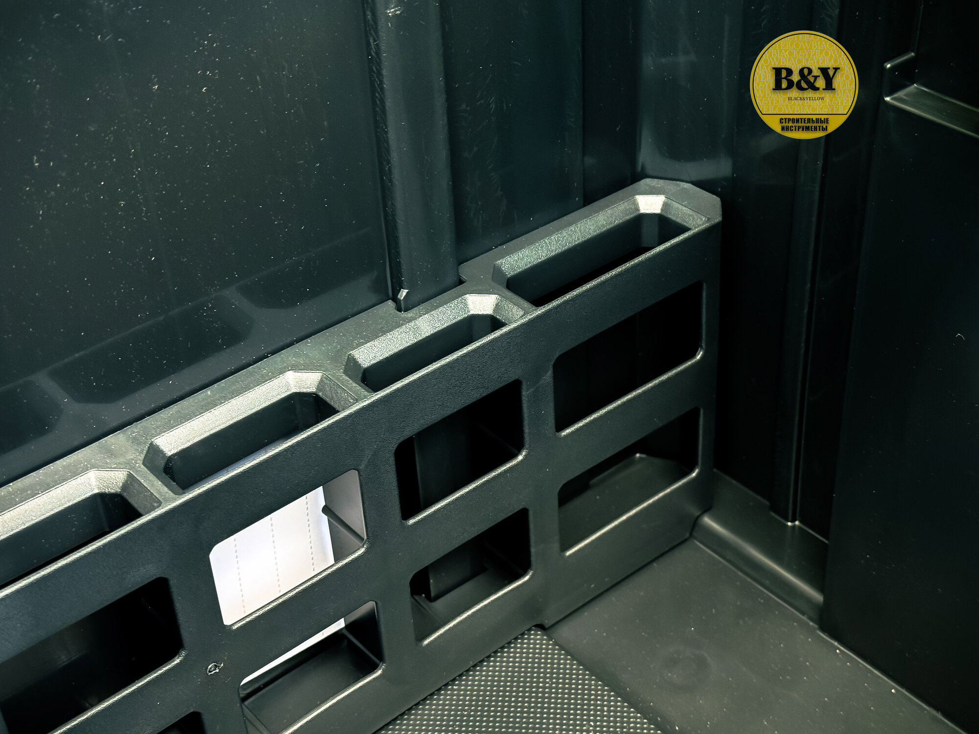 | Минусы: | "вместительный" - увы две боковые широкие выемки под стекирование ящиков, реально отбирают по дюйму глубины с каждого бока - итого минус 5 см. вместо 44см - максимум 38, некоторые инструменты казалось бы нужной длины - не влезают в этот ящик. Впрочем это проблема всех подобных систем. |