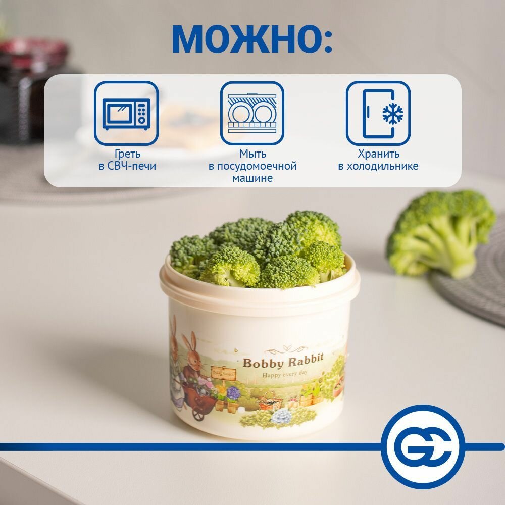 Bobby Rabbit Контейнер детский пластиковый для еды с собой, в школу с герметичной крышкой круглый Зайчата, 420мл