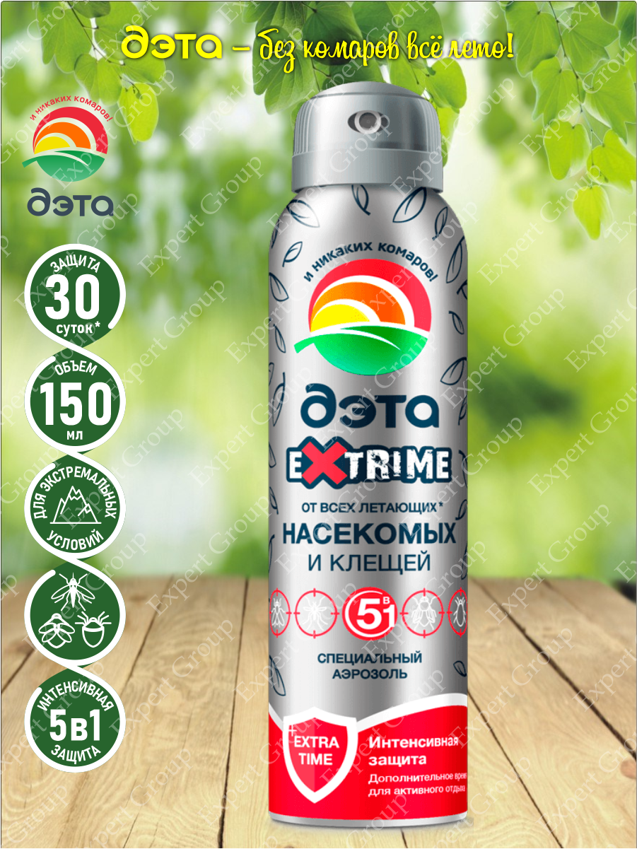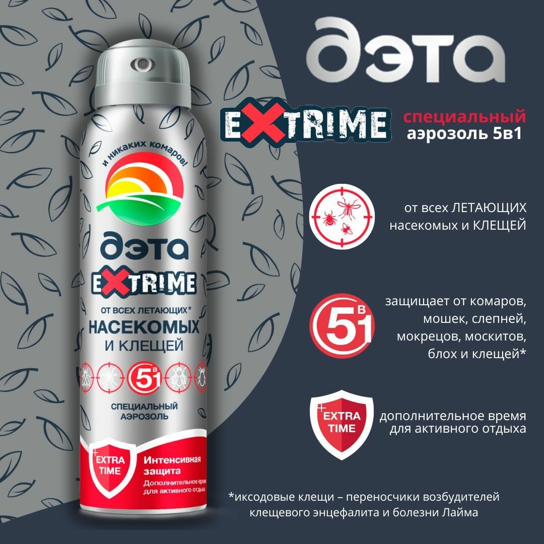 Купить Аэрозоль от всех летающих насекомых и клещей ДЭТА EXTRIME, 150 мл
