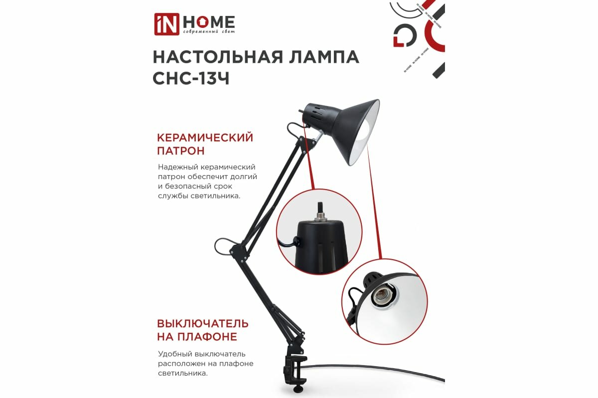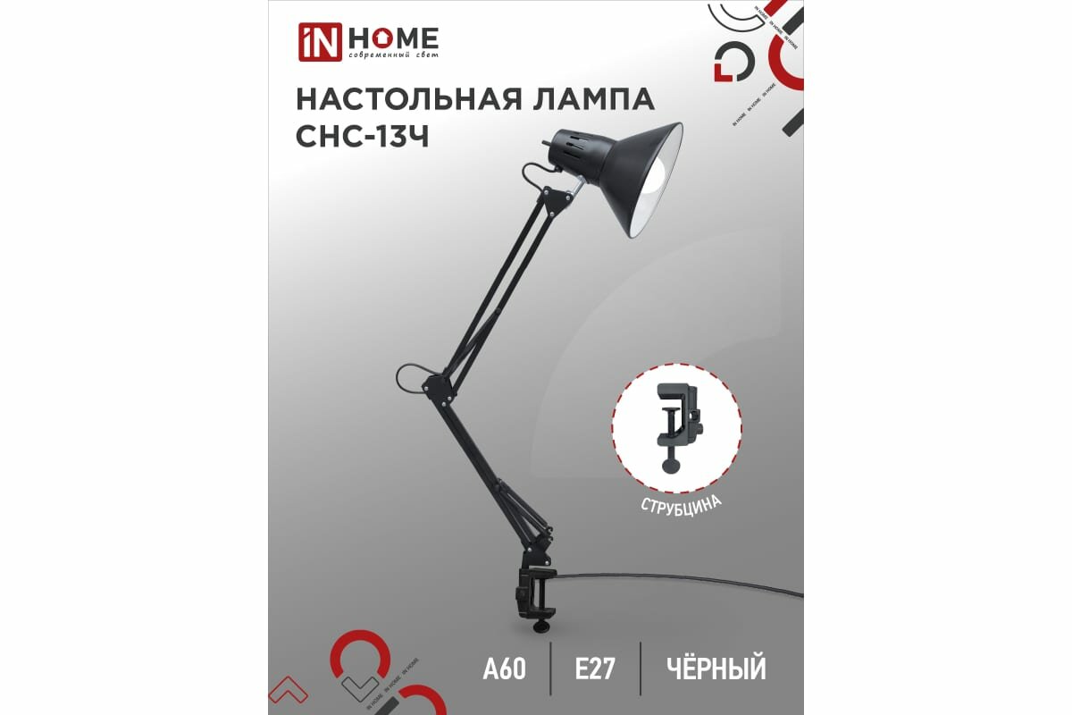 Светильник настольный под лампу СНС-13Ч на струбцине 60Вт E27 черн. (коробка) IN HOME 4690612012735 ( 1шт. )