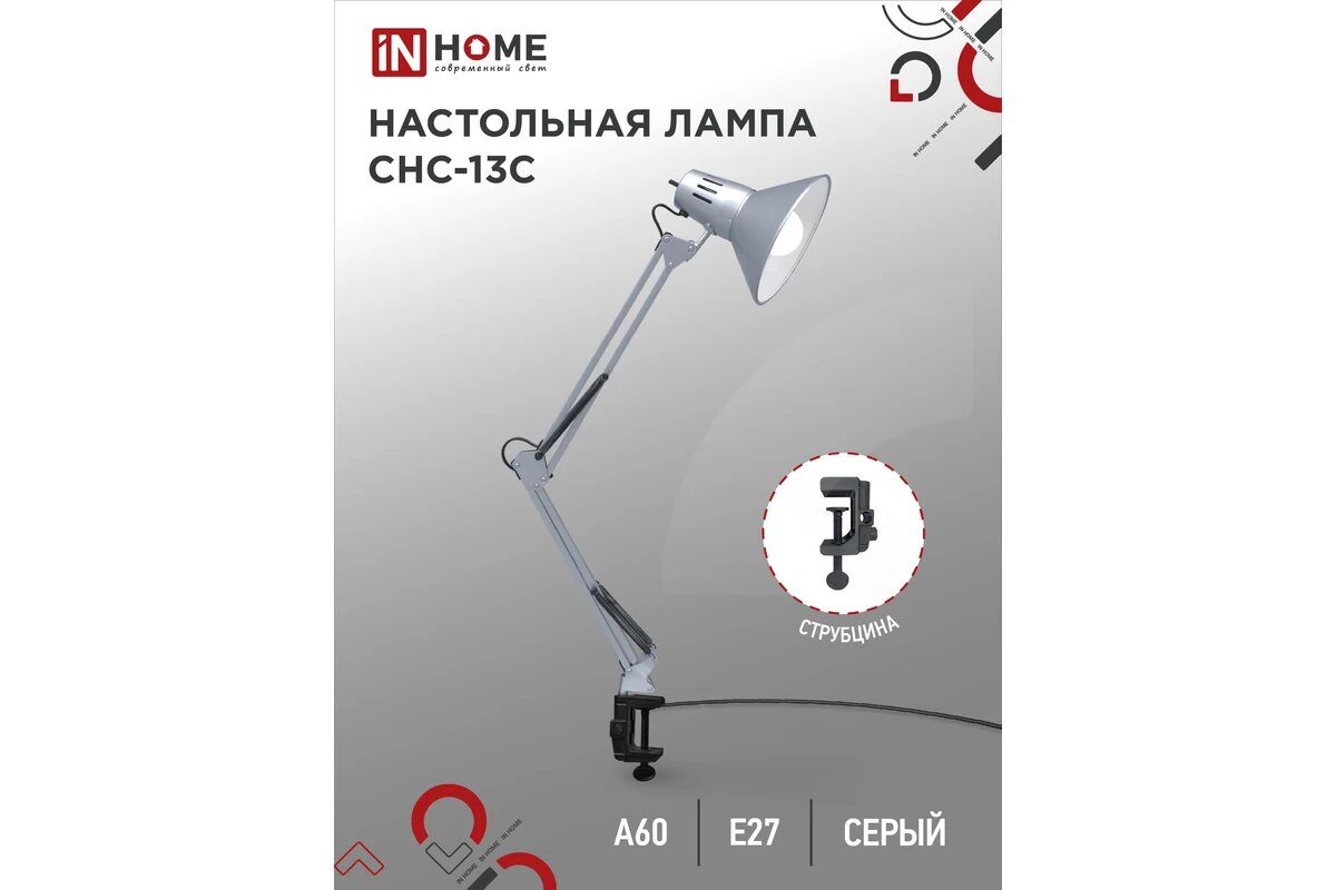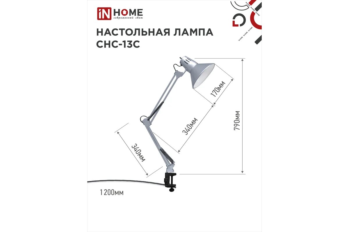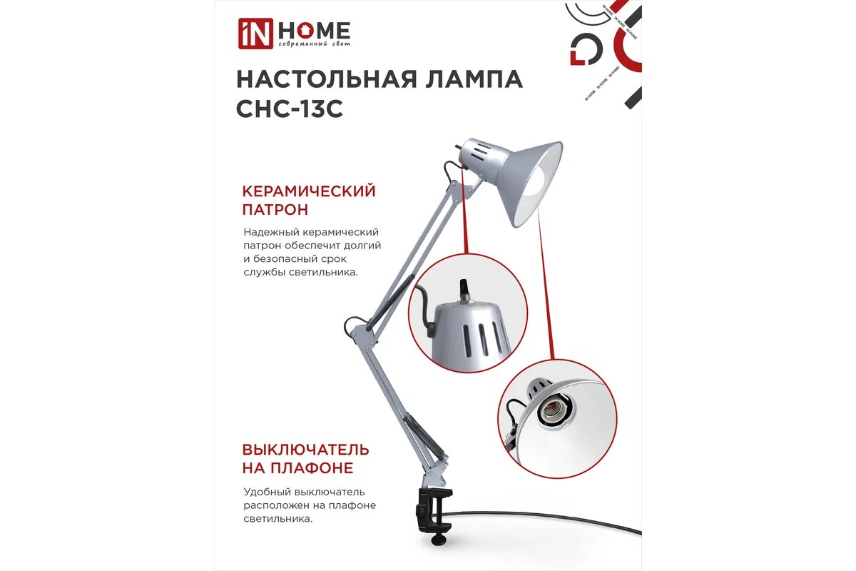 Настольная лампа (светильник) струбцина IN HOME СНС-13С 60Вт E27 серебристый 4690612012889
