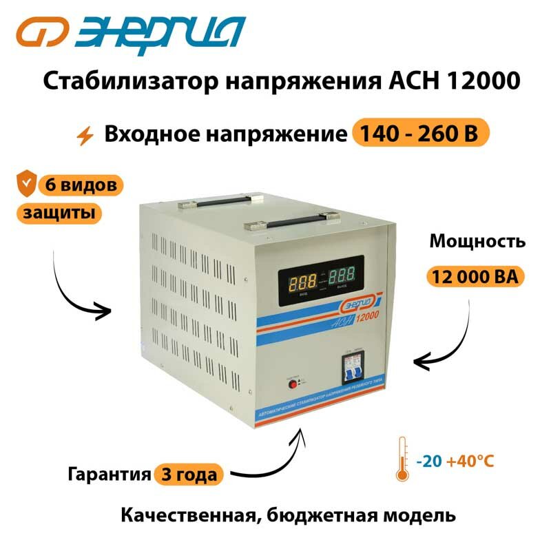 Купить Стабилизатор АСН-12 000 энергия с цифр.дисплеем