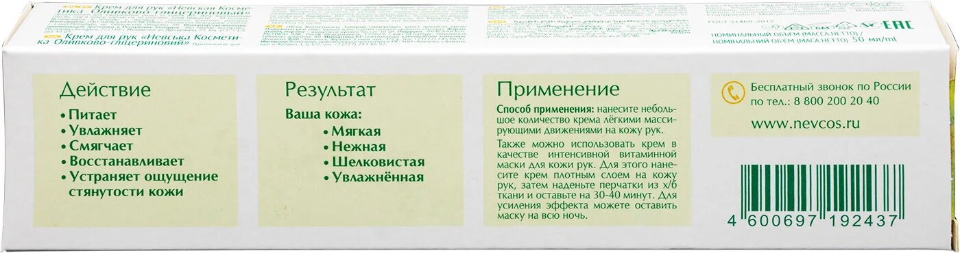Крем для рук невская косметика Оливково-глицериновый, 50 мл
