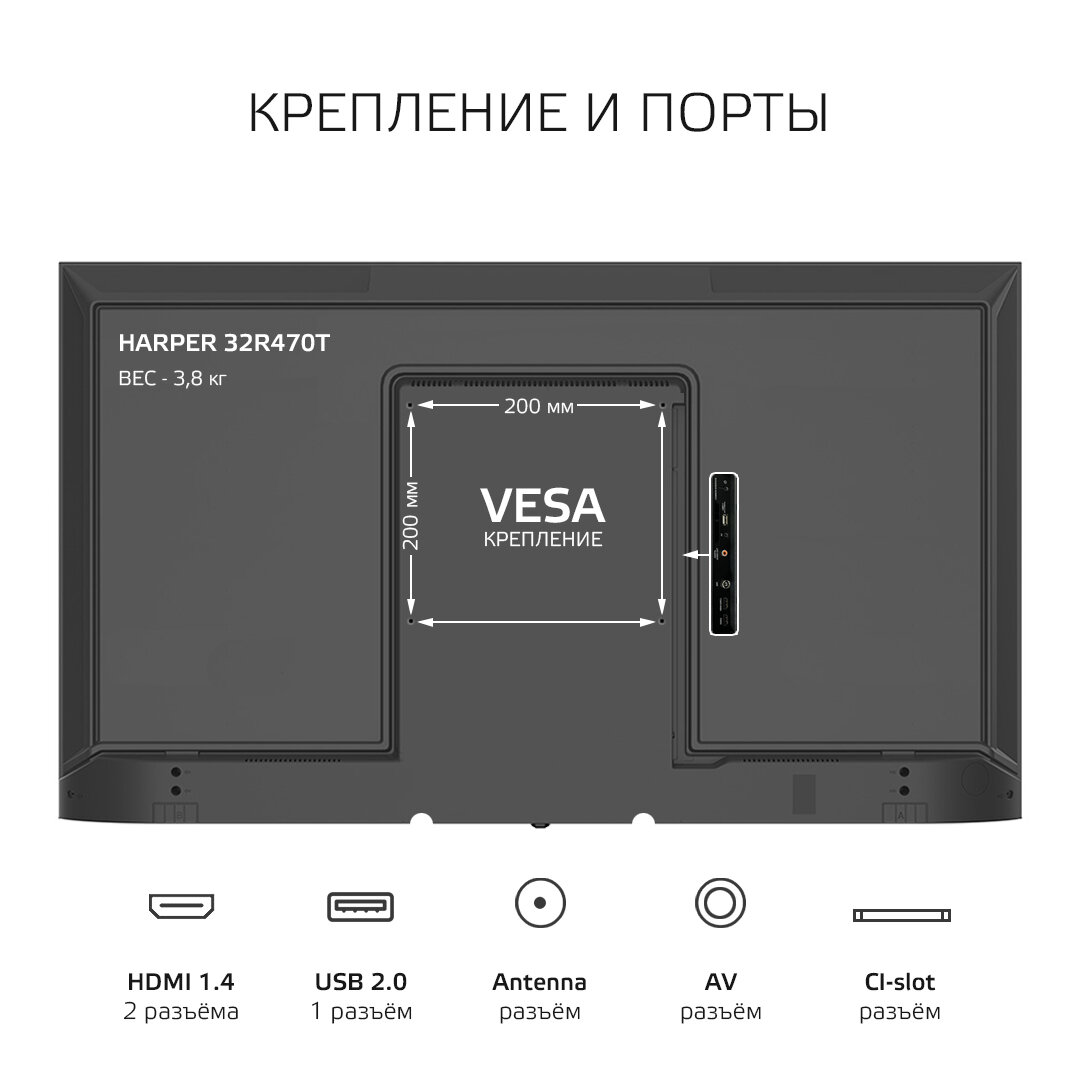 Телевизор HARPER 32R470T / HD 1366x768 / Direct LED / диагональ 32" / 60 Гц, черный интересное: