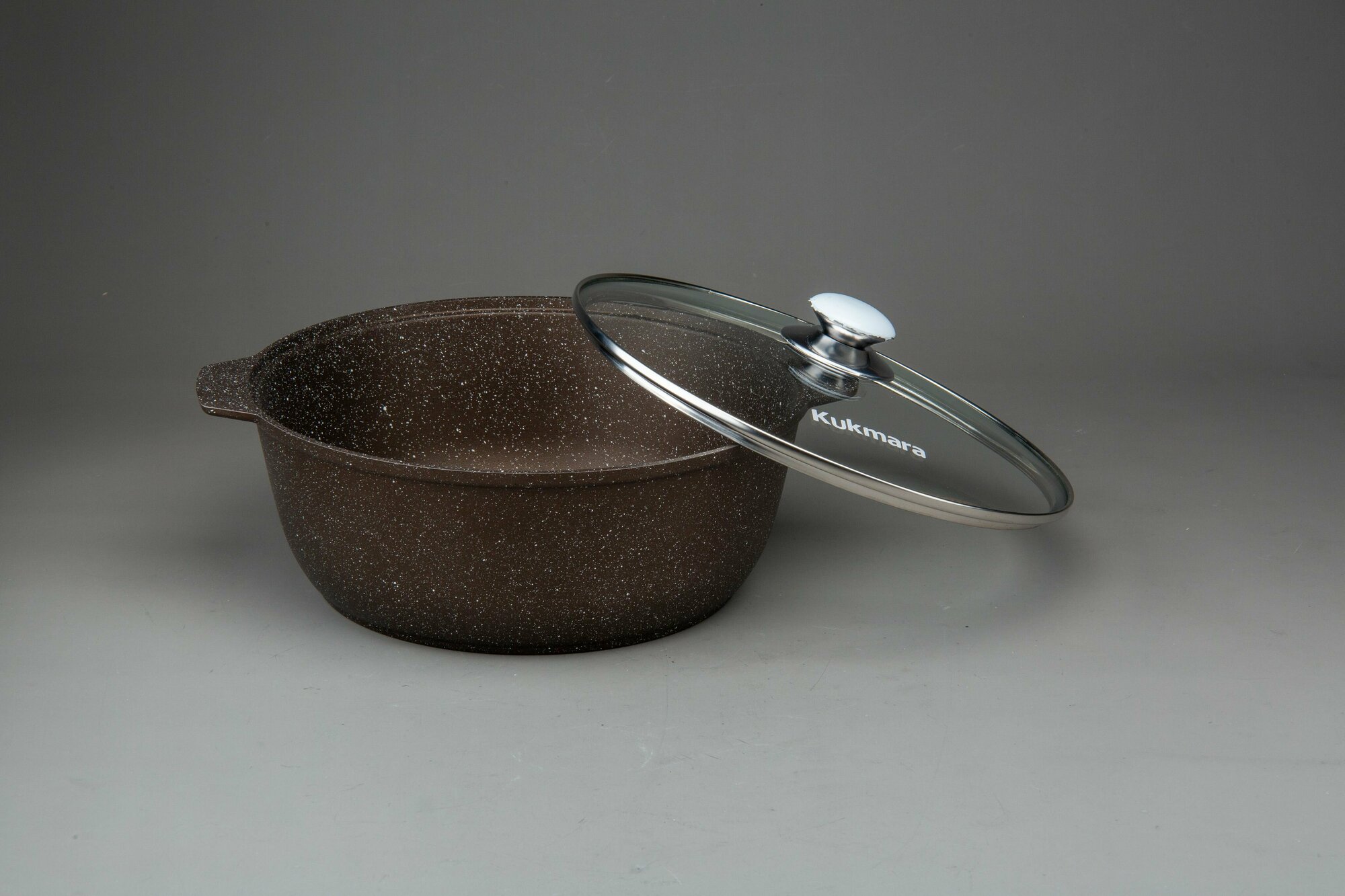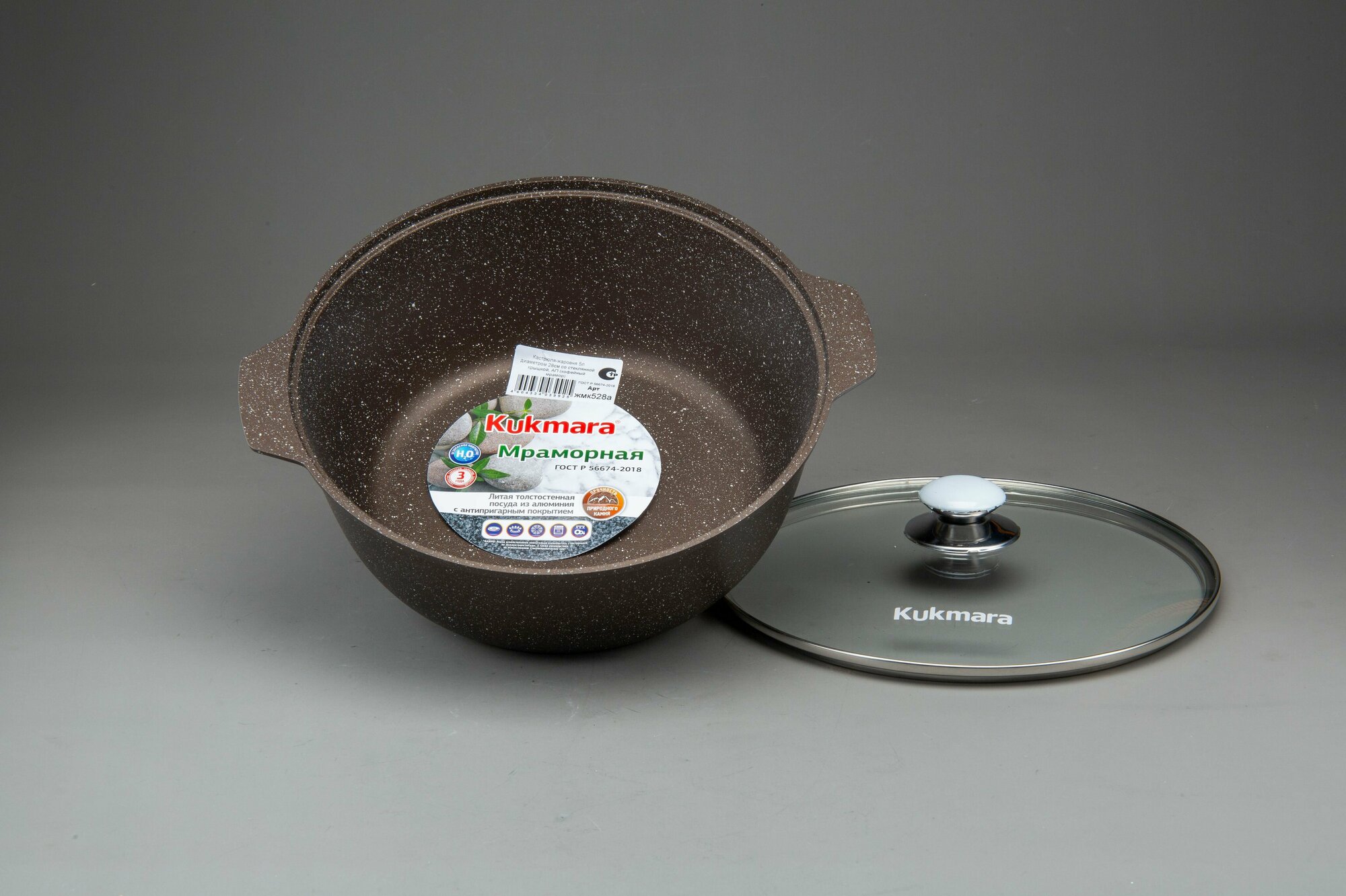 Кастрюля KUKMARA Granit ultra, 8 л, стеклянная крышка, антипригарное покрытие, коричневый мрамор