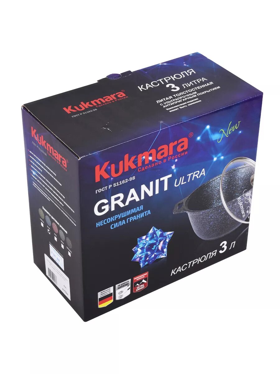 Кастрюля 6 л KUKMARA Granit ultra, кгг62а, алюминий, синий