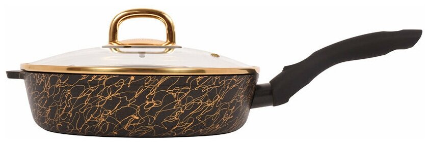Сковорода глубокая 260мм с ручкой,со стекл.крышкой,АП линия "Грация" (черный/золото)