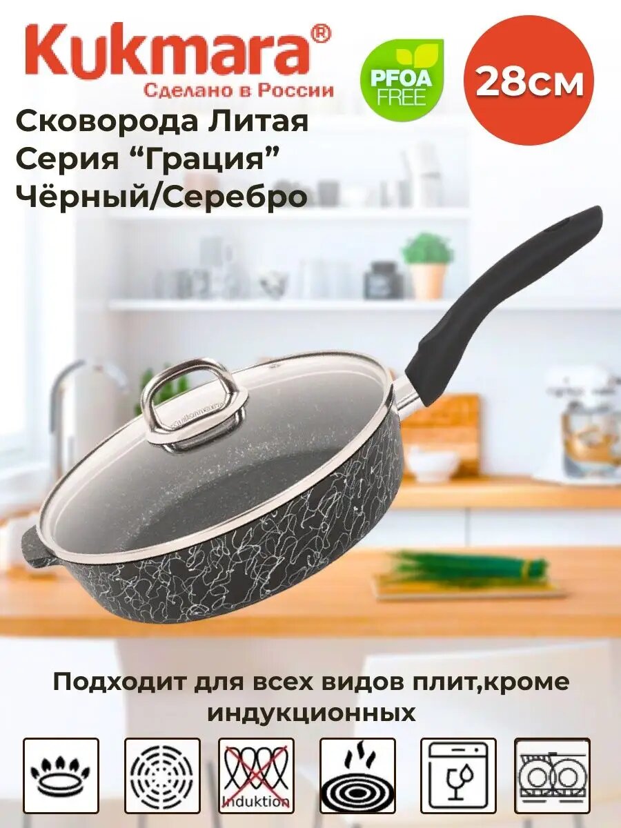 Купить Сковорода Kukmara Грация антипригарная, литая, 28 см