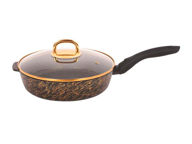 Сковорода глубокая 260мм с ручкой,со стекл.крышкой,АП линия "Грация" (черный/золото)
