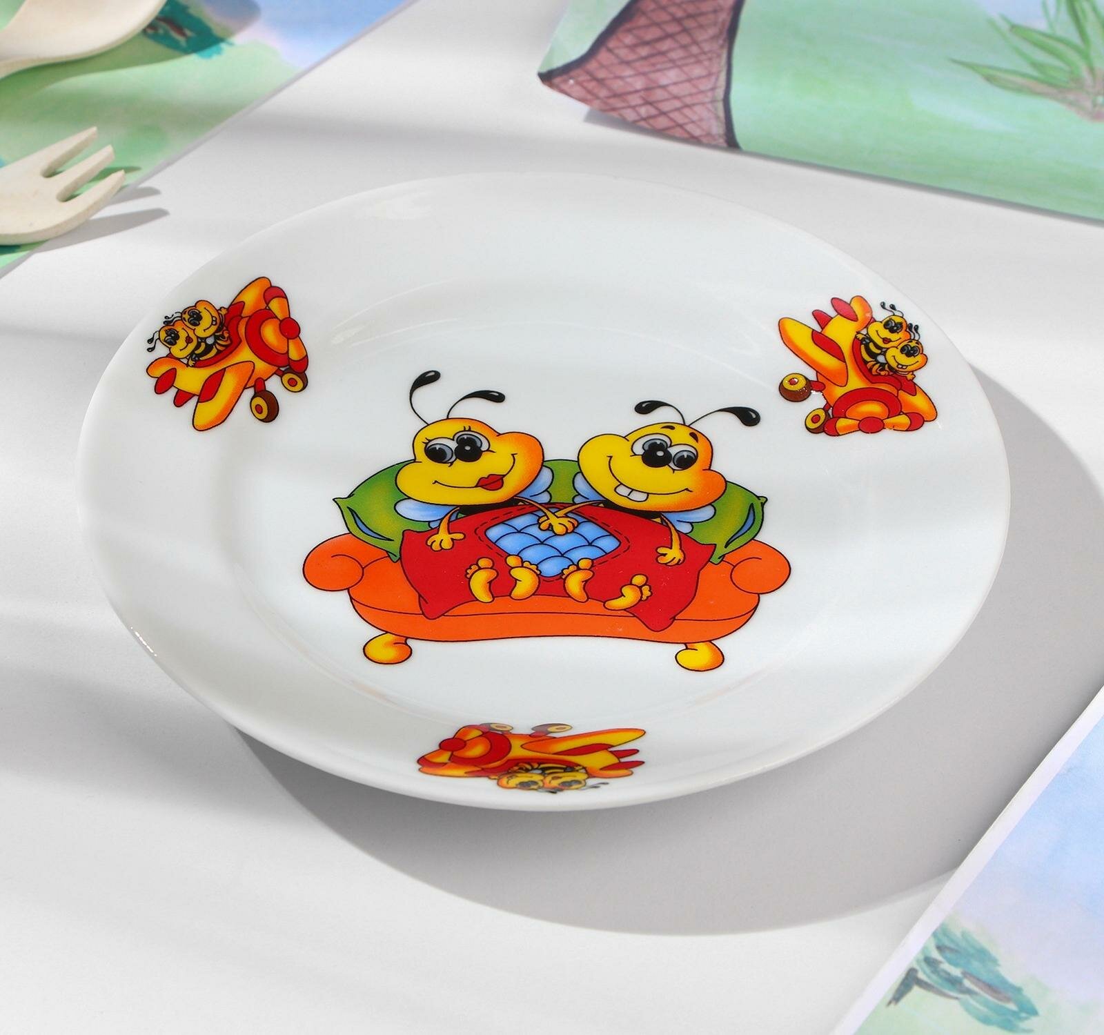 Добрушский фарфоровый завод Тарелка фарфоровая «Пчёлы», d=17 см, рисунок микс, цвет белый