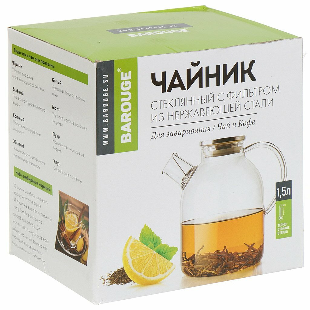 СохранитьЧайник заварочный Barouge, стекло, для чая и кофе, с фильтром, объем: 1.5 л интересное: