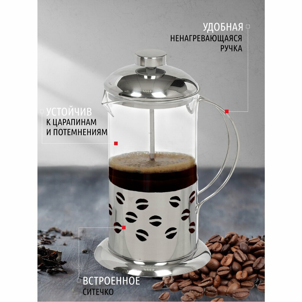 Френч-пресс 0.6 л, стекло, нержавеющая сталь, Кофе