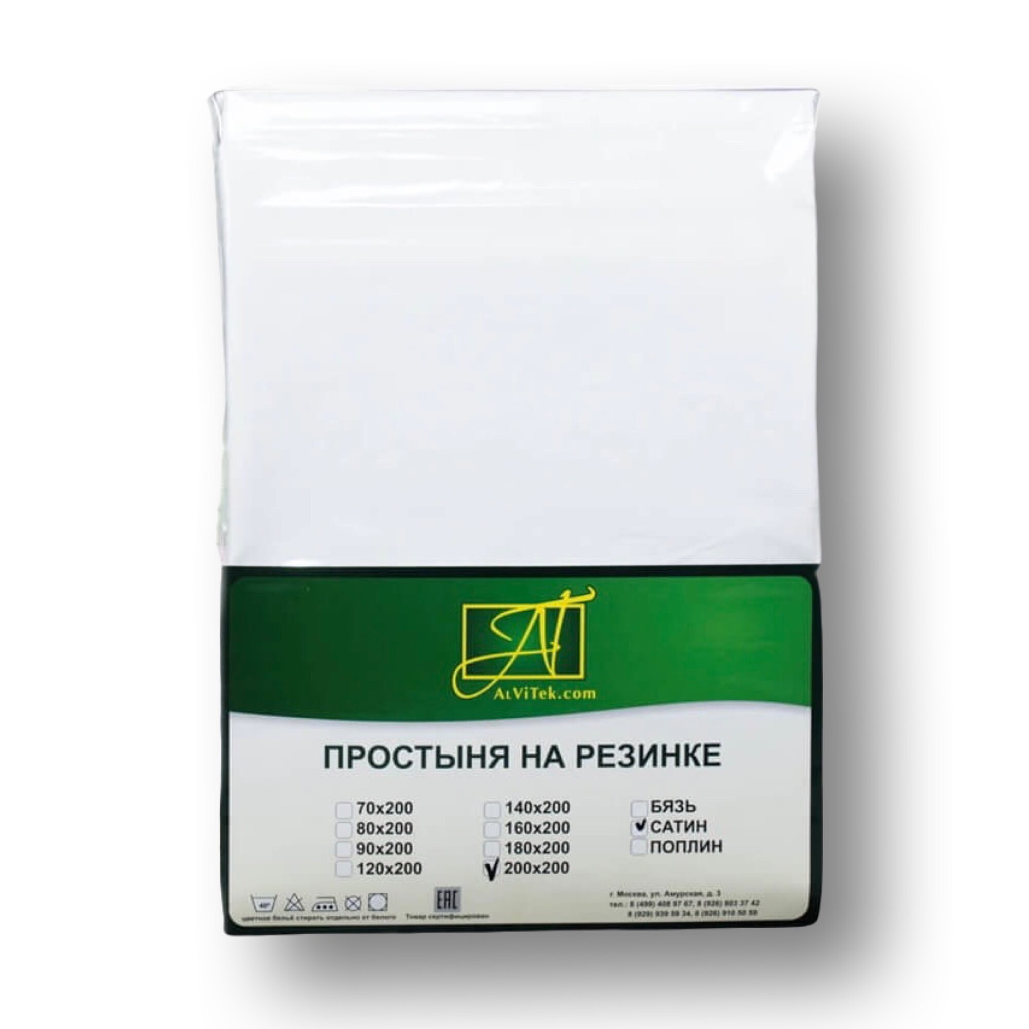 Простынь на резинке AlViTek (АльВиТек) 140х200х25, 1,5 спальная, Натяжная, Сатин, 100% хлопок, Цвет белый, AALV-ПР-СО-Р-140-БЕЛ