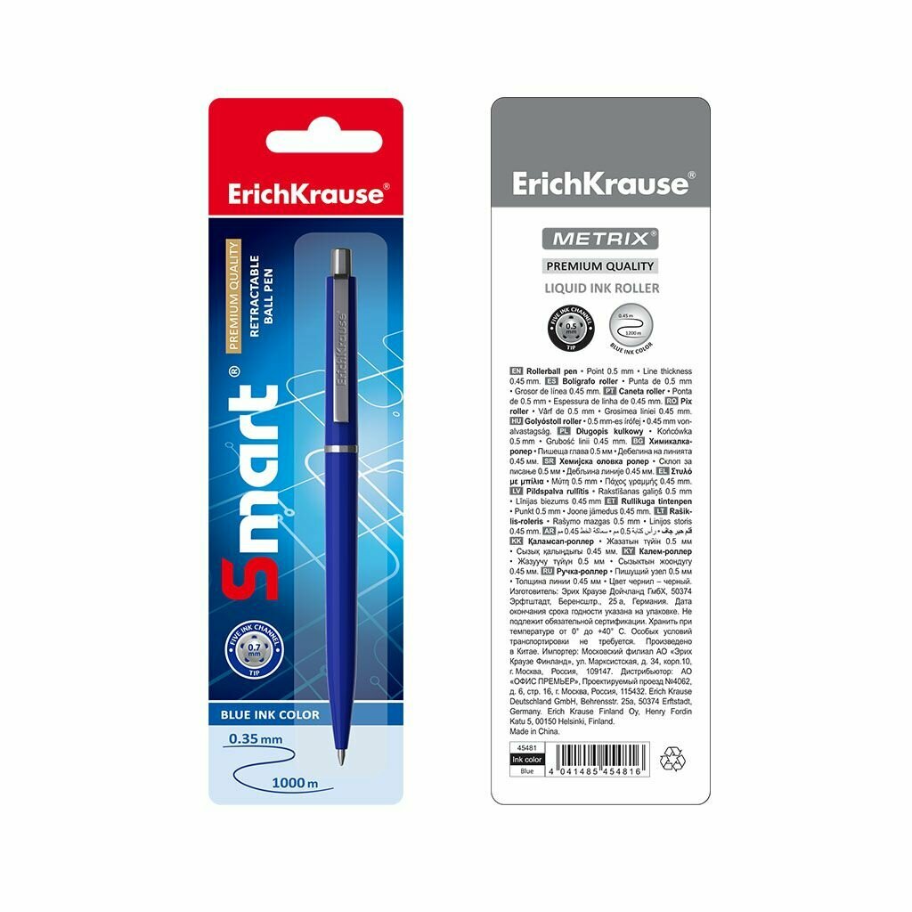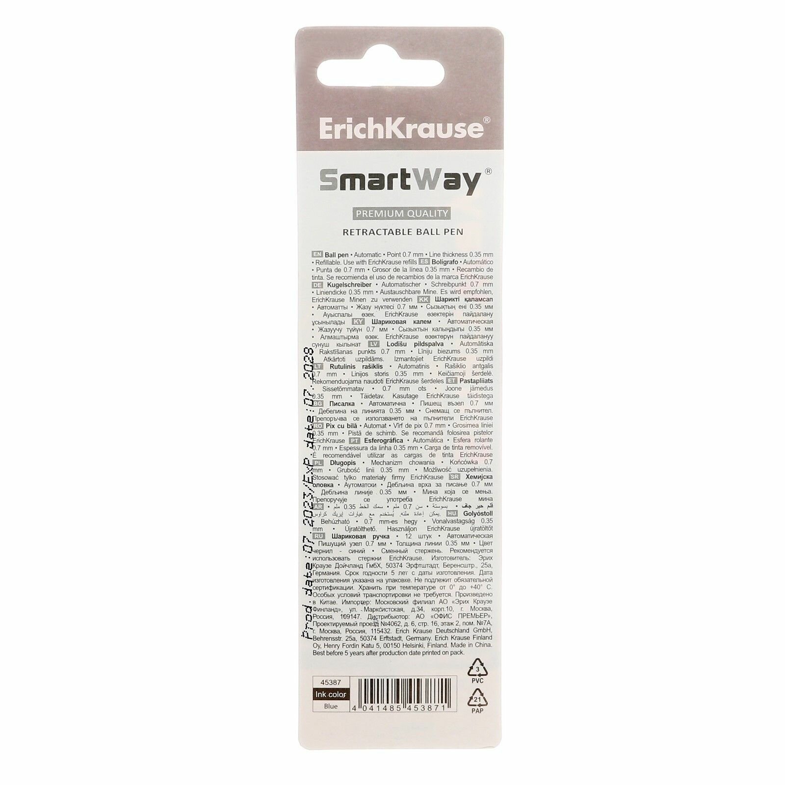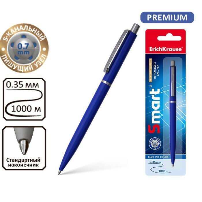 Ручка шариковая автоматическая Smart, узел 0.7 мм, чернила синие, длина линии письма 1000 метров, блистер, ErichKrause