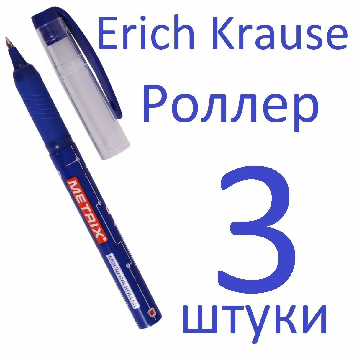 Ручка-роллер Erich Krause METRIX синяя, 0,5мм набор 3 штуки интересное: