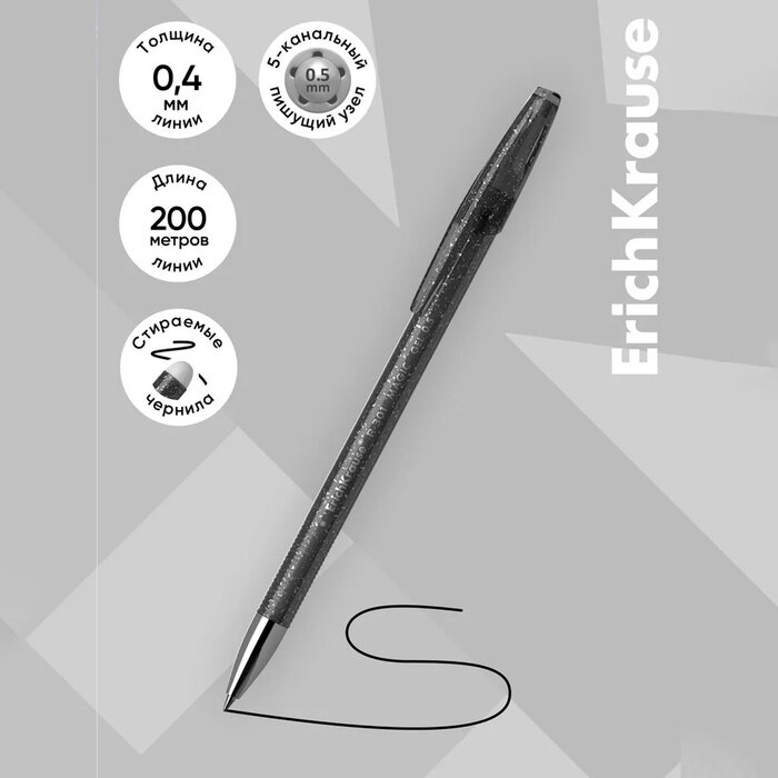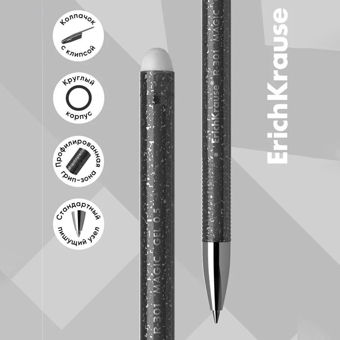 Ручка гелевая стираемая Erich Krause R-301 Magic Gel, узел 0.5 мм, чернила чёрные, длина письма 200 м, цена за 1 шт