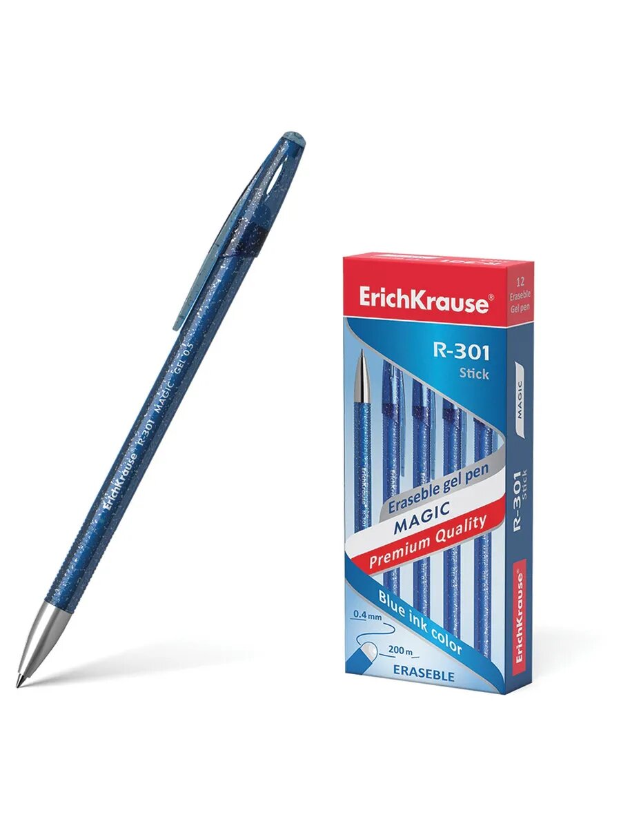 Ручка стираемая гелевая ERICH KRAUSE "R-301 Magic Gel", синяя, корпус синий, узел 0,5 мм, линия письма 0,4 мм, 45211 В комплекте: 12шт.
