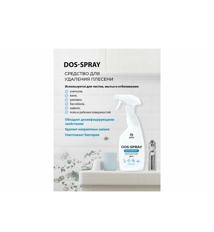 Grass Чистящие средство для уборки дома ванной туалета от плесени грибка дезинфицирующее Dos-spray 600 мл