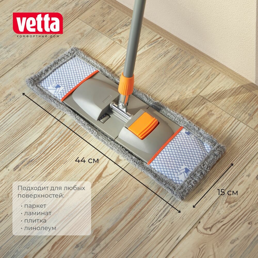 Купить Насадка для швабры из микрофибры Vetta, 44х15 см, для мытья полов, окон, стен