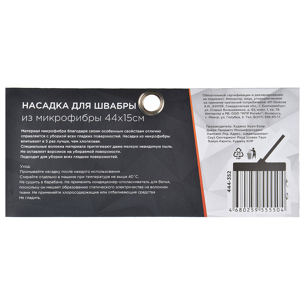 Насадка для швабры из микрофибры Vetta, 44х15 см, для мытья полов, окон, стен интересное: