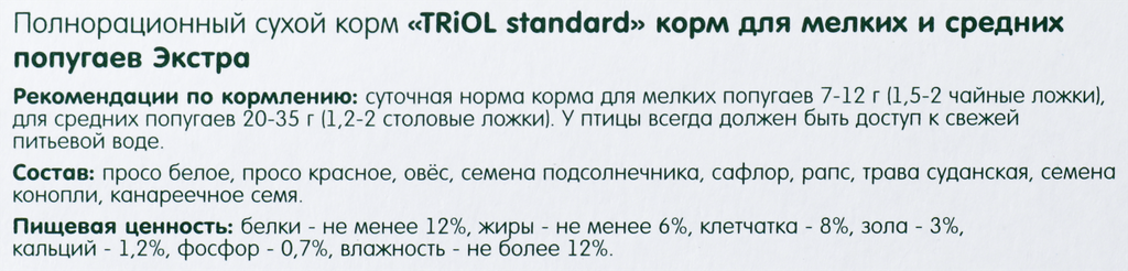 TRIOL STANDARD корм для средних и мелких попугаев Экстра (500 гр)