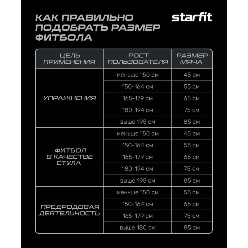 Фитбол STARFIT GB-108 65 см, 1000 гр, антивзрыв, фиолетовый