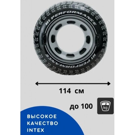 Надувной круг INTEX 56268 Шина, с держателями 114 см, от 9 лет