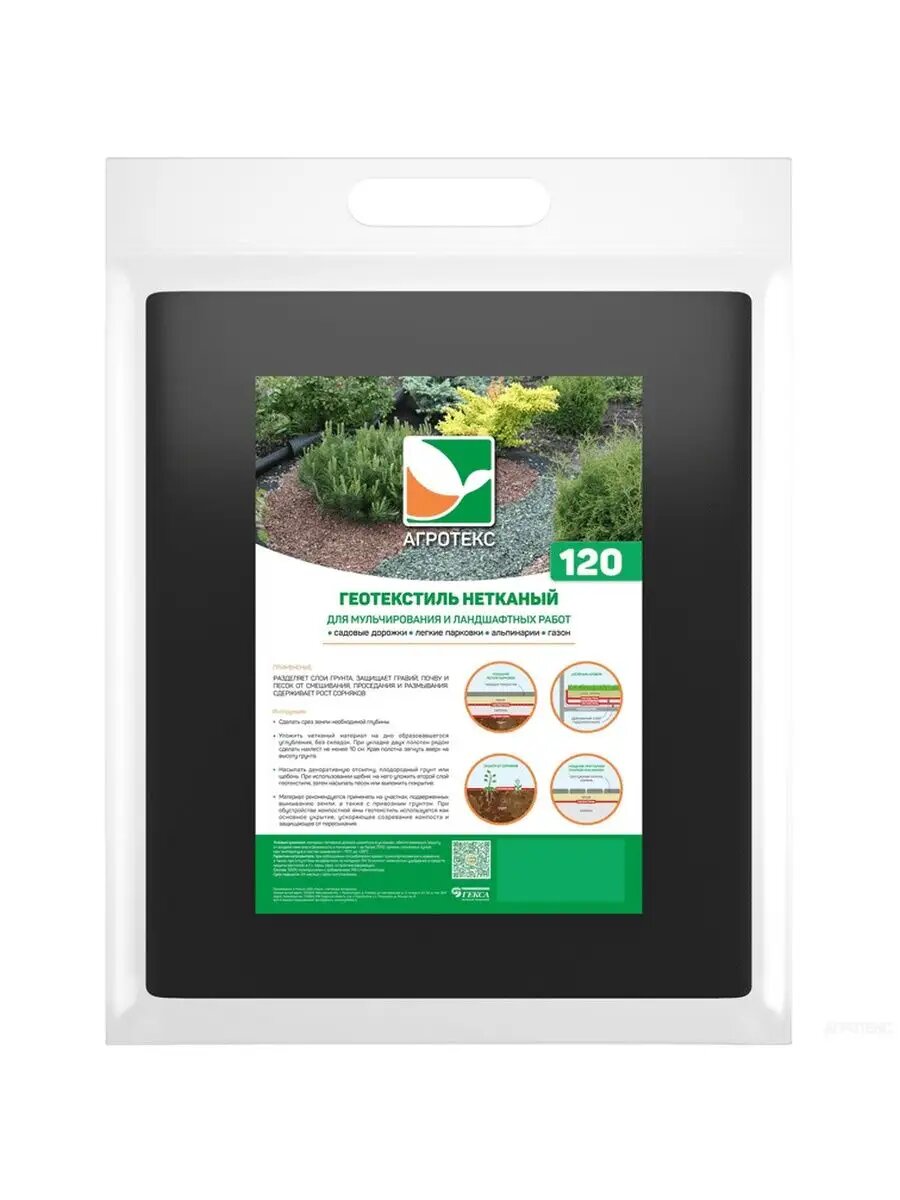 Агротекс Материал для ландшафтных работ, 12 × 1,6 м, плотность 120, с УФ-стабилизатором, чёрный, «Агротекс»