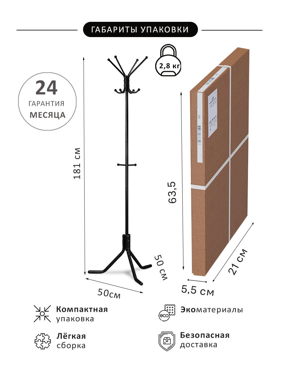 Вешалка напольная Hoff Пико 4, 41х181х41, цвет чёрный