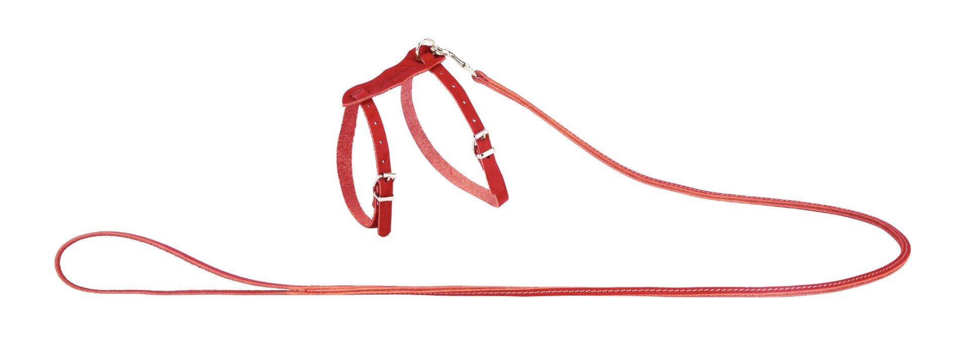 Аркон Комплект кожаный №2, цвет красный, к2кр, двухслойный прошитый поводок шириной 6мм + шлейка для кошек и маленьких собак
