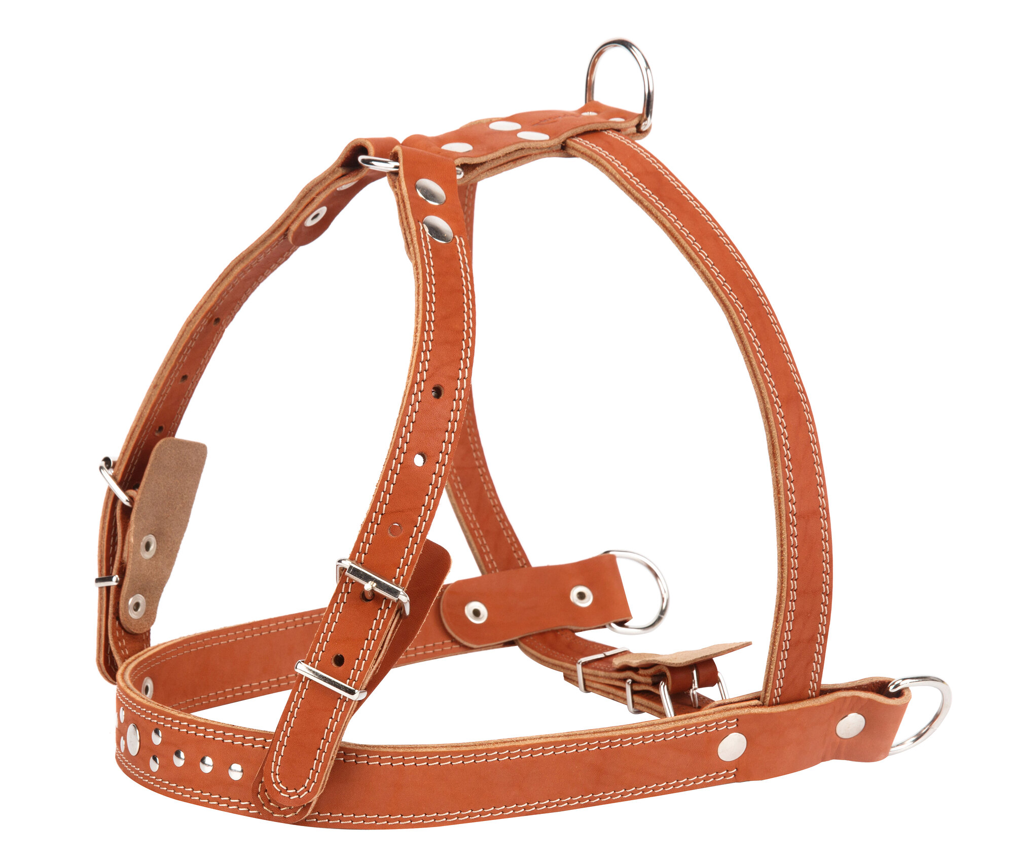 Шлейка аркон кожаная для собак №1 водильная, двухслойная коньячный (80-98 см/25 мм)