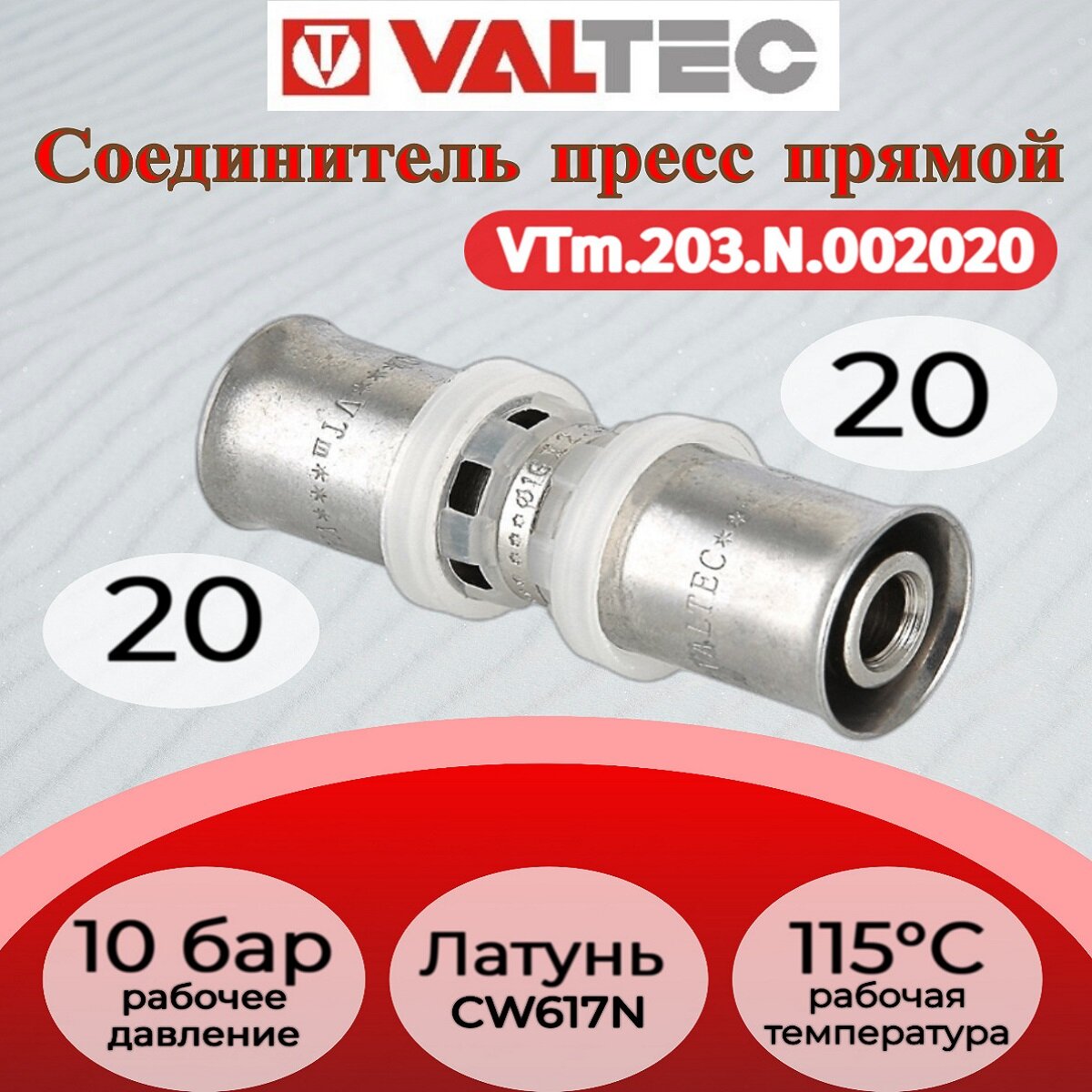 Пресс-фитинг прямой, Valtec, VTm.203.N.002020