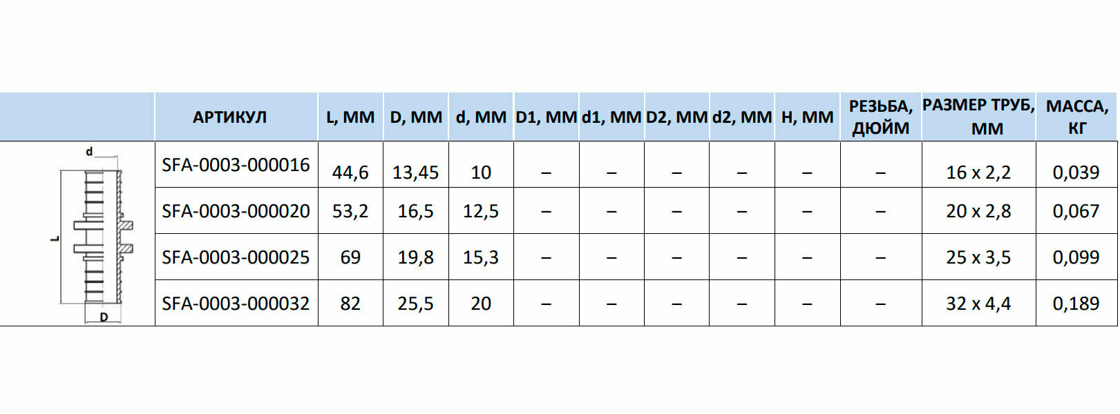 Равнопроходная соединительная муфта STOUT SFA-0003-000020