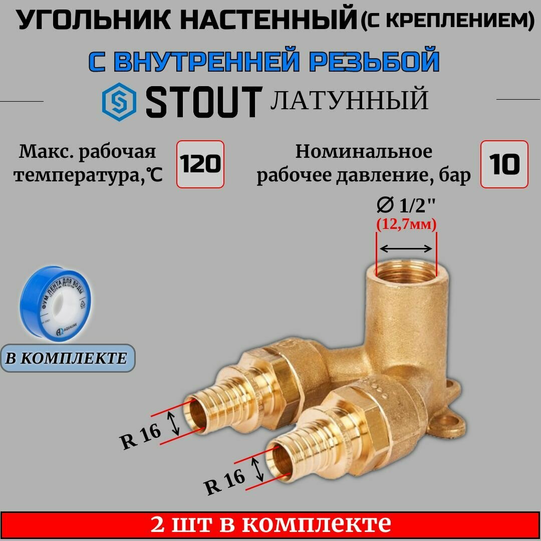 STOUT SFA-0039-001612 Проточный настенный угольник 16x1/2" для труб из сшитого полиэтилена