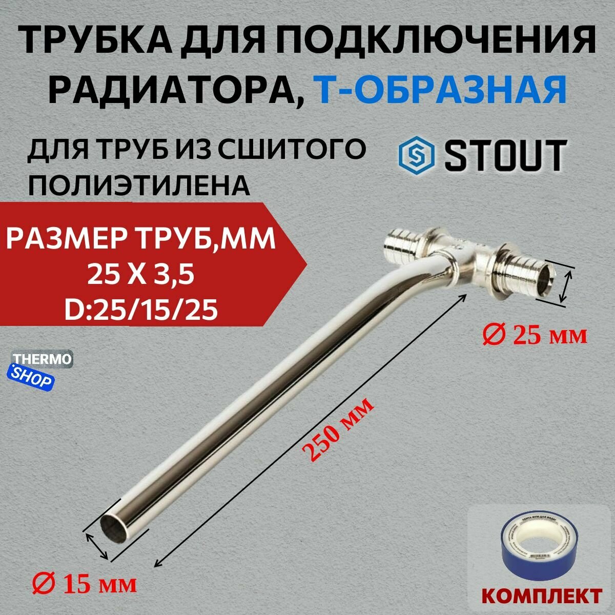 Трубка для подключения радиатора, Т-образная Stout 25/250/25