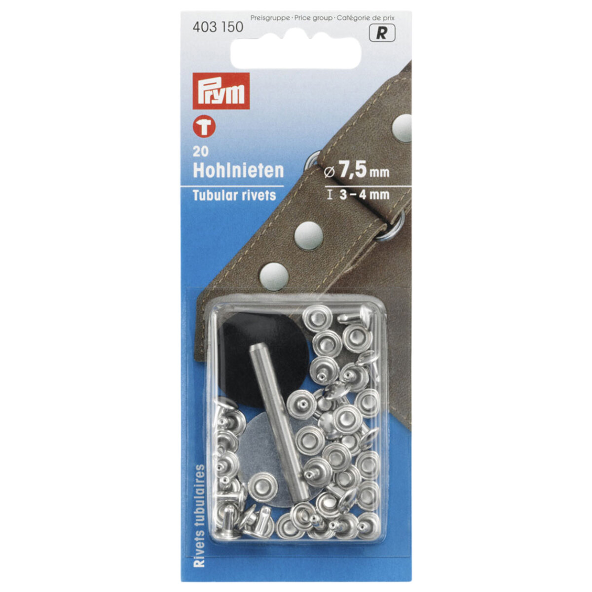403150 Хольнитены двухсторонний, диаметр 7,5мм + инструмент для установки, для толщины материала 3-4мм, металл, серебро, 20 шт, Prym